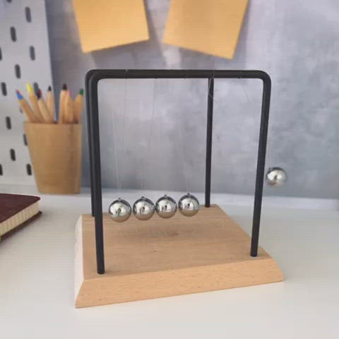 This iconic science toy has been updated to make a classy desk accessory. Featuring beech wood base and stainless steel frame and 5 balls. Simply lift one ball and let it do to watch conserved momentum and energy work in front of you! This is the largest size standing at 18cm tall.