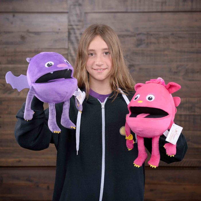 - Fabulous Baby Purple Monster puppet - a mystical creation complete with wings for fun-filled imaginative play. Its striking shade of purple, fanged teeth and shaped wings make it the ideal companion for puppet enthusiasts of all ages.