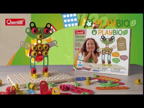Screws, nuts, washers, wheels and pillars, made of durable bio-plastic material, can be mounted without special tools. All a child needs is a pair of hands and a lot of imagination! Thanks to the perforated base, the constructions can be realized horizontally or vertically. The Tecno Jumbo starter set stimulates coordination, logic and creativity, helping children to understand the basic principles of mechanics while having fun.